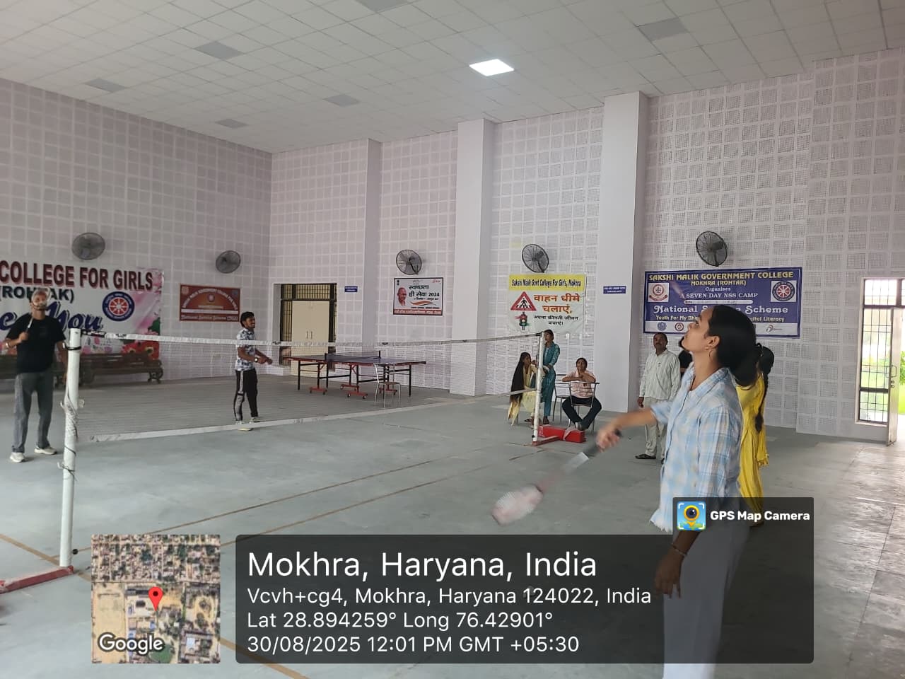 Sakshi Malik Govt. College, Mokhra have the sports facilities like Indoor Game Hall, Table Tennis, Volleyball, Cricket, Yoga, Badminton etc.